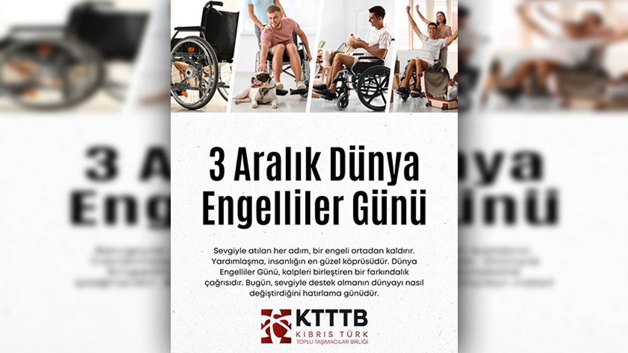 Kıbrıs Türk Toplu Taşımacılar Birliği (KTTTB), “Toplumun ayrılmaz bir parçası olan engelli bireylerin, sosyal yaşamda karşılaştıkları engelleri ortadan kaldırmak hepimizin ortak sorumluluğudur” dedi.