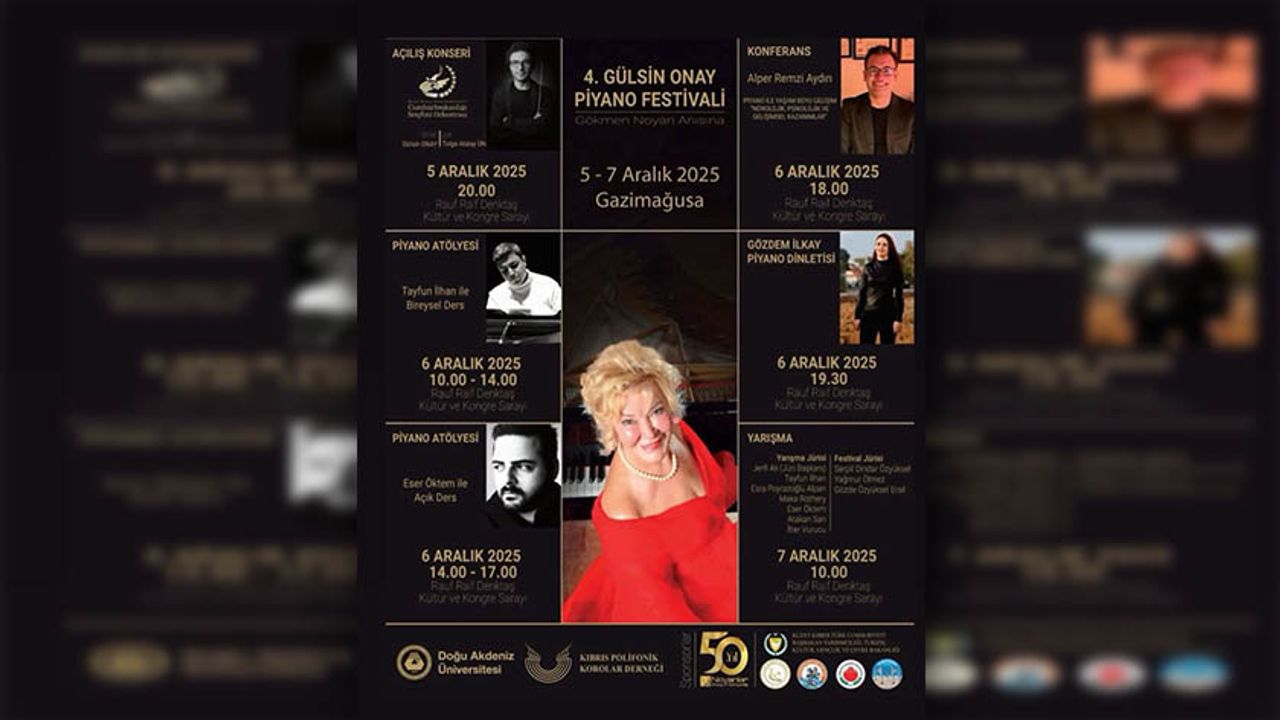 Doğu Akdeniz Üniversitesi ile Kıbrıs Polifonik Korolar Derneği iş birliğinde düzenlenen 4. Gülsin Onay Piyano Festivali, bu yıl Gökmen Noyan anısına cuma, cumartesi ve pazar günü Gazimağusa’da yapılacak.