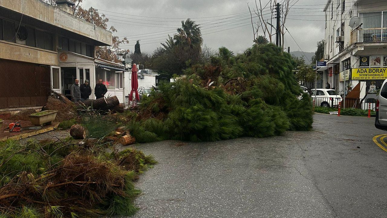 İtfaiye karşısındaki yüzyıllık çamın devrildiğini de aktaran Şenkul, belediye ve Orman Dairesi ekiplerinin gerekli müdahaleyi yapıp sokağı trafiğe açtığını bildirdi.