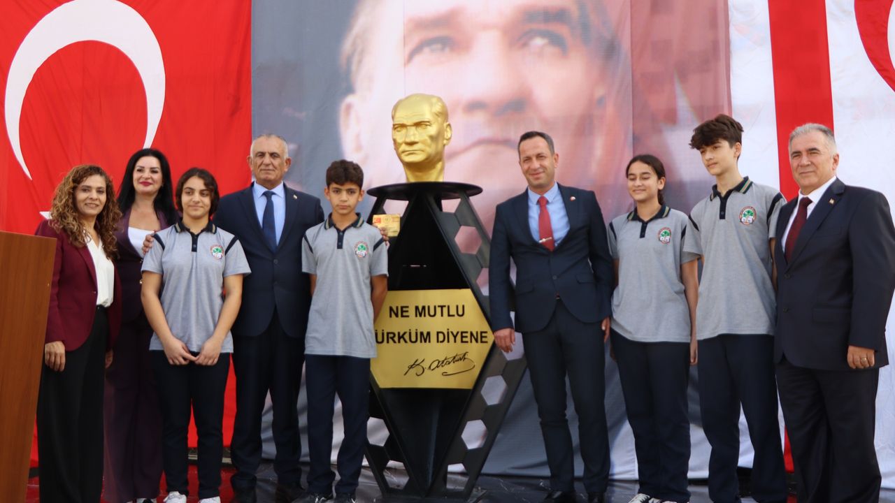 Atleks Sanverler Ortaokulu'na yapılan Atatütk Büstü bugün düzenlenen törenle açıldı.