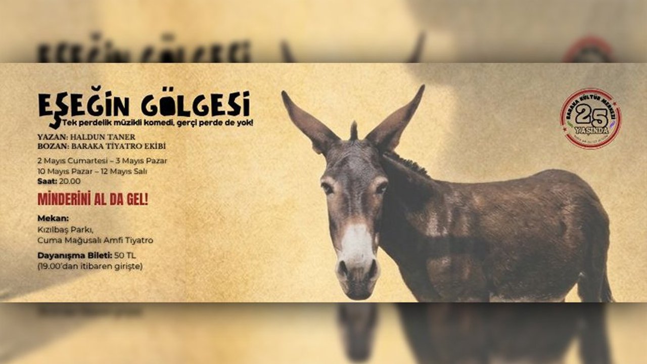 Bakara Kültür Merkezi’nden yapılan açıklamaya göre, Haldun Taner’in yazdığı, Baraka Tiyatro Ekibi’nin uyarladığı “Eşeğin Gölgesi” oyunu Kızılbaş Parkı Amfi Tiyatro’da seyirciyle buluşacak.