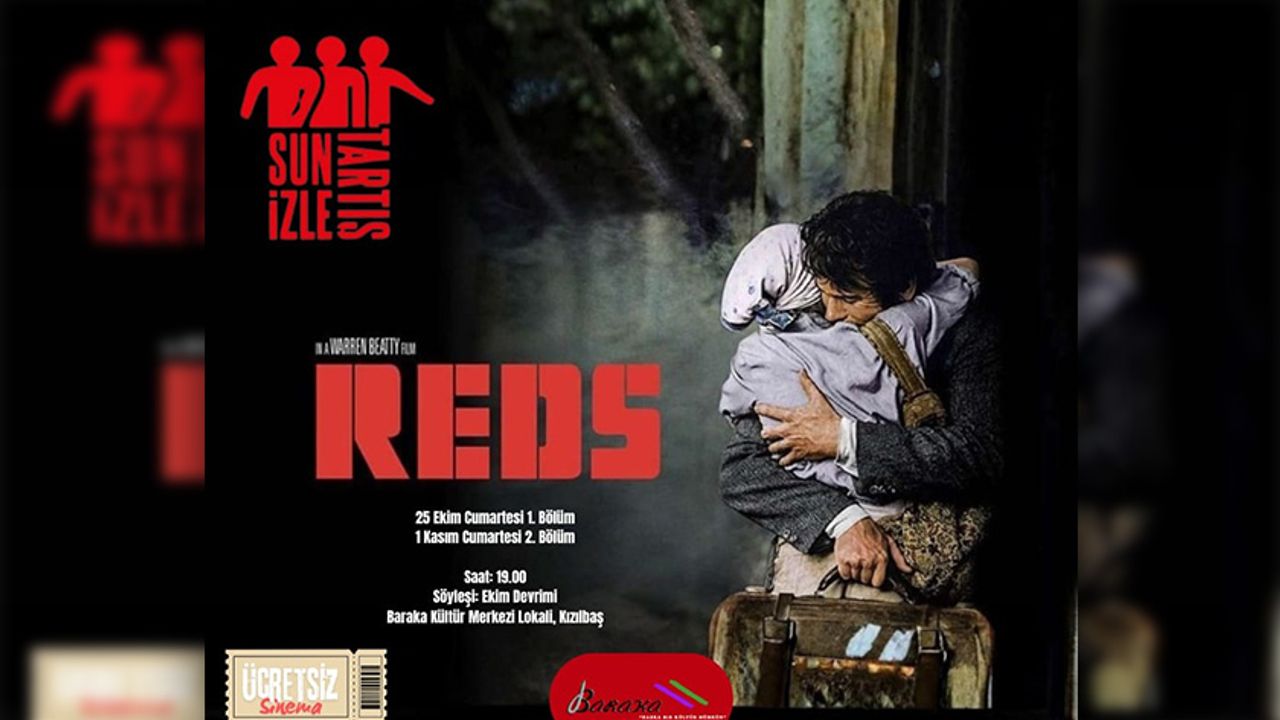 Baraka Kültür Merkezi'nden yapılan açıklamaya göre, Warren Beatty’nin yönetmenliğini yaptığı ve başrollerinde Diane Keaton ile Jack Nicholson’ın yer aldığı “Reds” (Kızıllar) filmi, iki bölüm halinde izleyiciyle buluşacak. Filmin ilk bölümü cumartesi, ikinci bölümü ise 1 Kasım Cumartesi akşamı saat 19.00’da Baraka Lokali’nde gösterilecek. Etkinlik ücretsiz olacak ve tüm sinemaseverlere açık olacak.