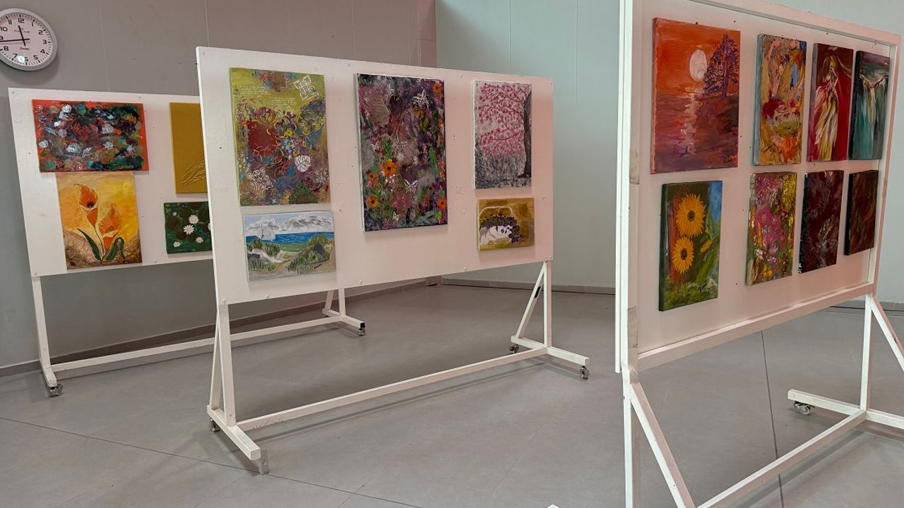 Berna Kelebek’in “Kelebek Esintileri” resim sergisi Ercan Havalimanı’da açıldı.