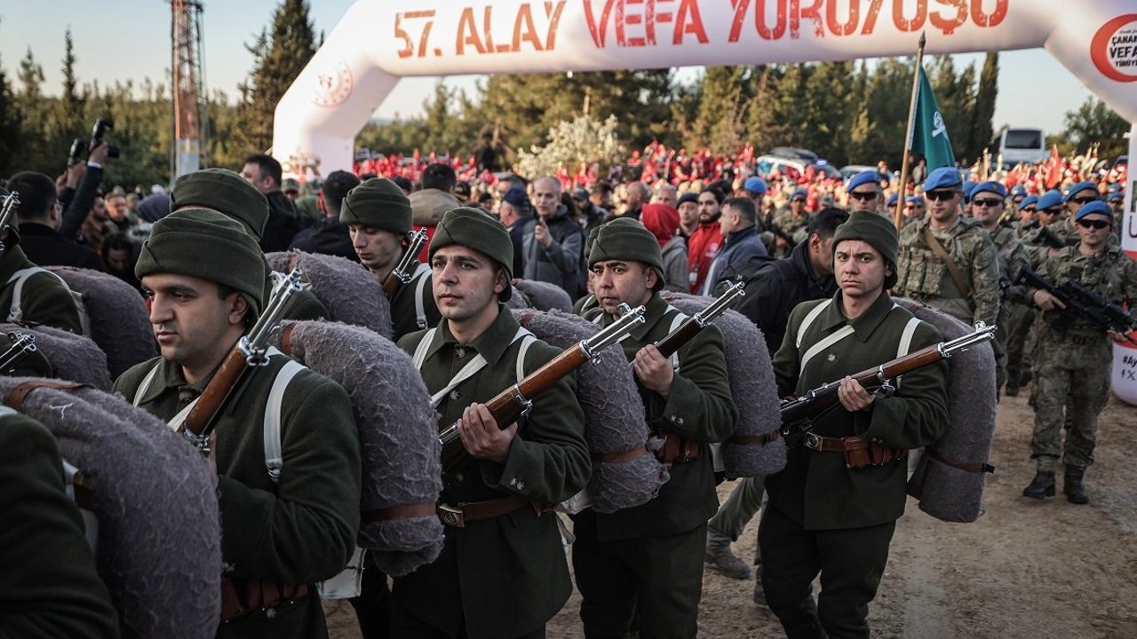 "Çanakkale Muharebeleri'nde vatan topraklarını canları ve kanları pahasına savunan 57. Alay'ın anısını yaşatmak ve gelecek nesillere Çanakkale ruhunu taşımak maksadıyla 57. Piyade Alayı yeniden teşkil edilmiştir. Yeniden kurulan 57. Piyade Alayı, muharebelerin cereyan ettiği bu topraklarda tarihi yarımadada bulunacak, icra edilen törenlerde, saygı nöbetlerinde ve canlandırma faaliyetlerinde görev alacaktır. Alay, az önce icra ettiğiniz 57. Alay yürüyüşünde en önde yer almış ve bundan sonraki yıllarda da aynı şekilde görev yapmaya devam edecektir. Önceki yıllarda 57. Alay'ın temsili sancağı, ülkemizin geleceği olan üniversite gençleri arasında devir teslimi yapılarak anısı yaşatılmıştır.