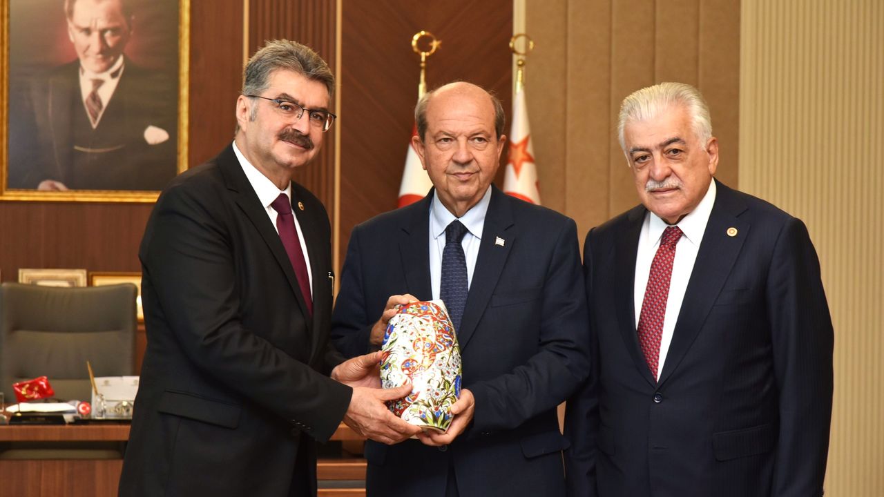 Görüşme öncesinde Azerbaycan ve Türkiye heyetleri, Cumhurbaşkanı Ersin Tatar’a anı hediyesi takdim etti.