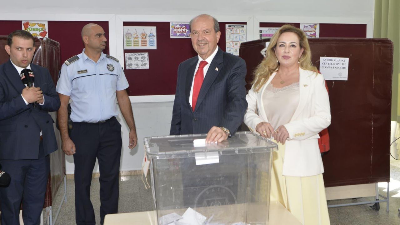 Cumhurbaşkanı ve bağımsız cumhurbaşkanı adayı Ersin Tatar, eşi Sibel Tatar ile birlikte oyunu, Lefkoşa Şehit Tuncer İlkokulu’nda 157 numaralı sandıkta kullandı.