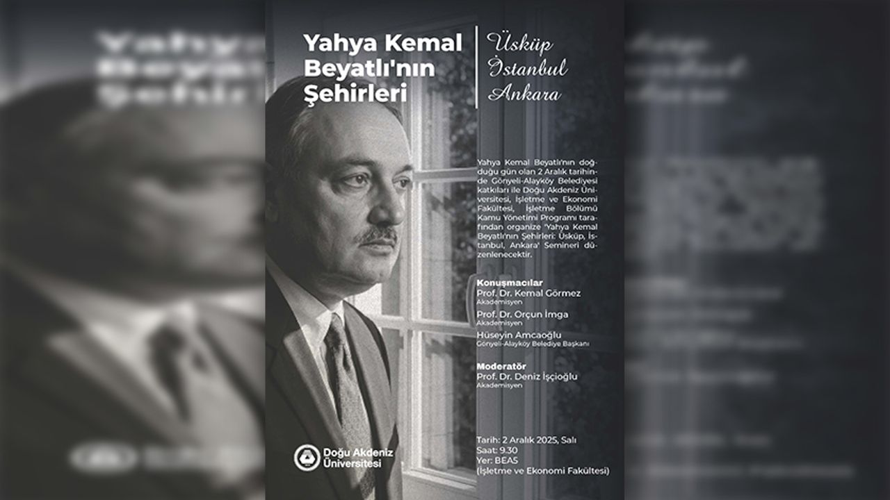 Üniversiteden verilen bilgiye göre, “Yahya Kemal Beyatlı’nın Şehirleri: Üsküp, İstanbul, Ankara” konulu seminer, Beyatlı’nın doğum günü olan yarın saat 09.30’da DAÜ İşletme ve Ekonomi Fakültesi, BEA 5 Salonu’nda olacak.