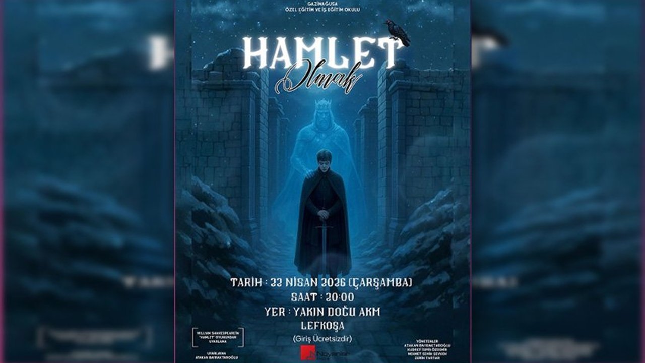 William Shakespeare’in “Hamlet” oyunundan uyarlanan tiyatro oyunu, saat 20.00’de Lefkoşa Yakın Doğu Üniversitesi (YDÜ) Atatürk Kültür ve Kongre Merkezi’nde sahnelenecek. Giriş, halka açık ve ücretsiz olacak.