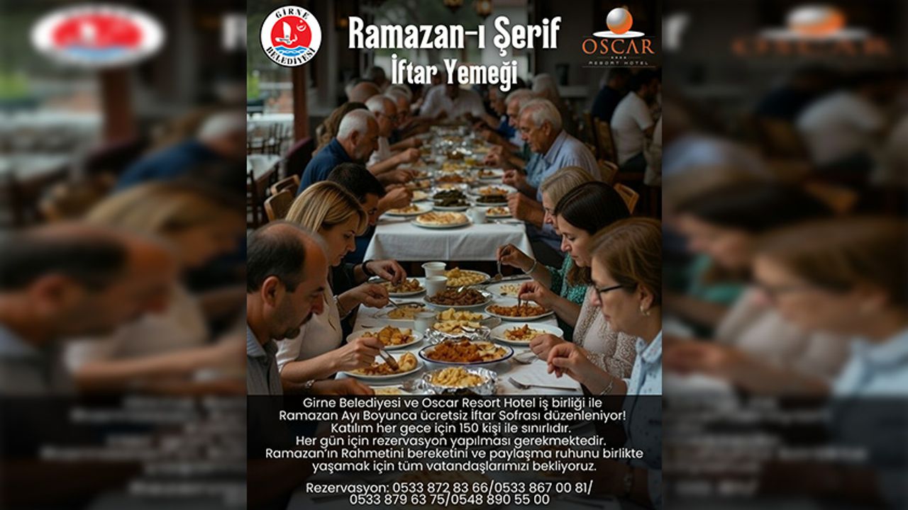 Girne Belediyesi ve Oscar Resort Hotel iş birliği ile Ramazan ayı süresince her akşam iftar sofrası kurulacak.