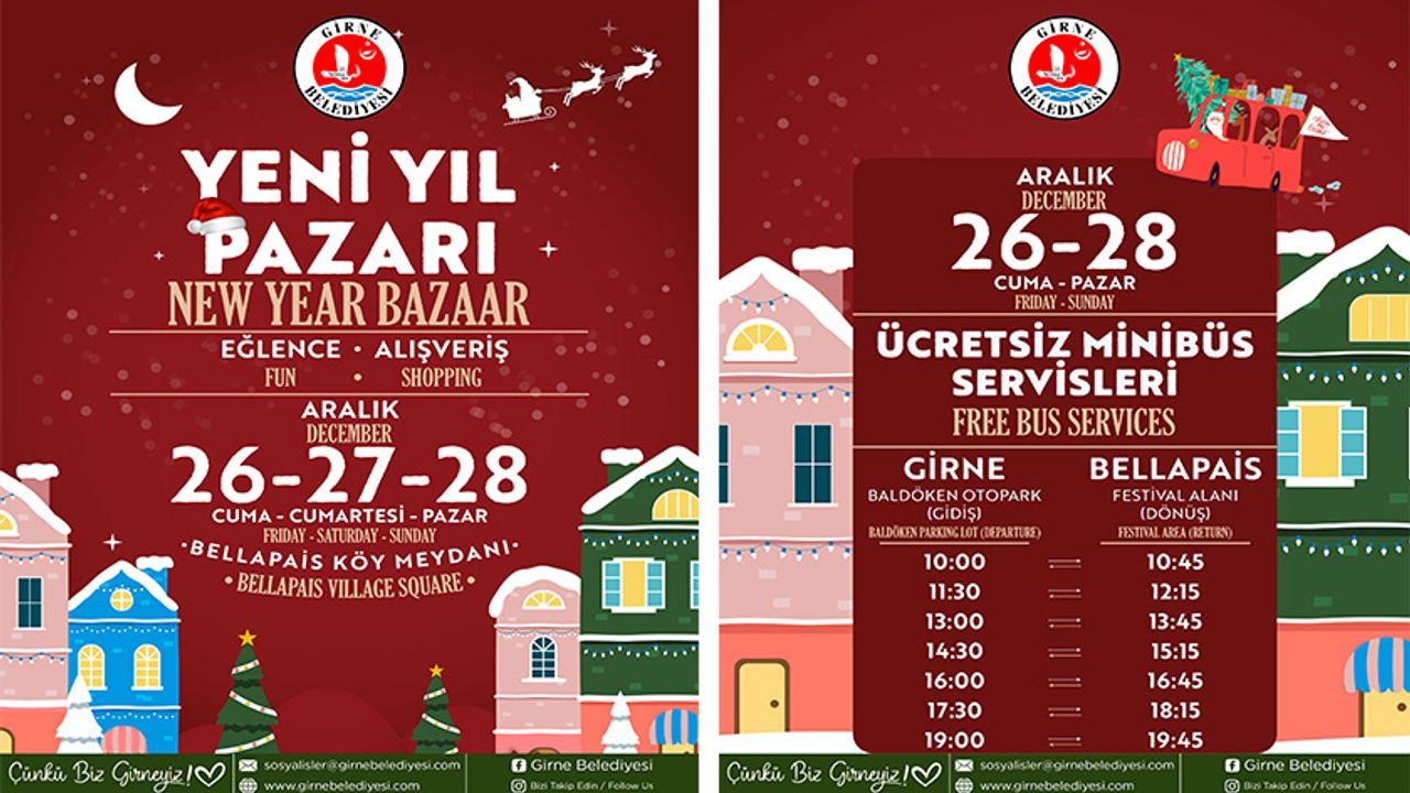 Girne Belediyesi tarafından düzenlenen Yeni Yıl Pazarı, 26–27–28 Aralık tarihlerinde Bellapais Köy Meydanı’nda kurulacak.