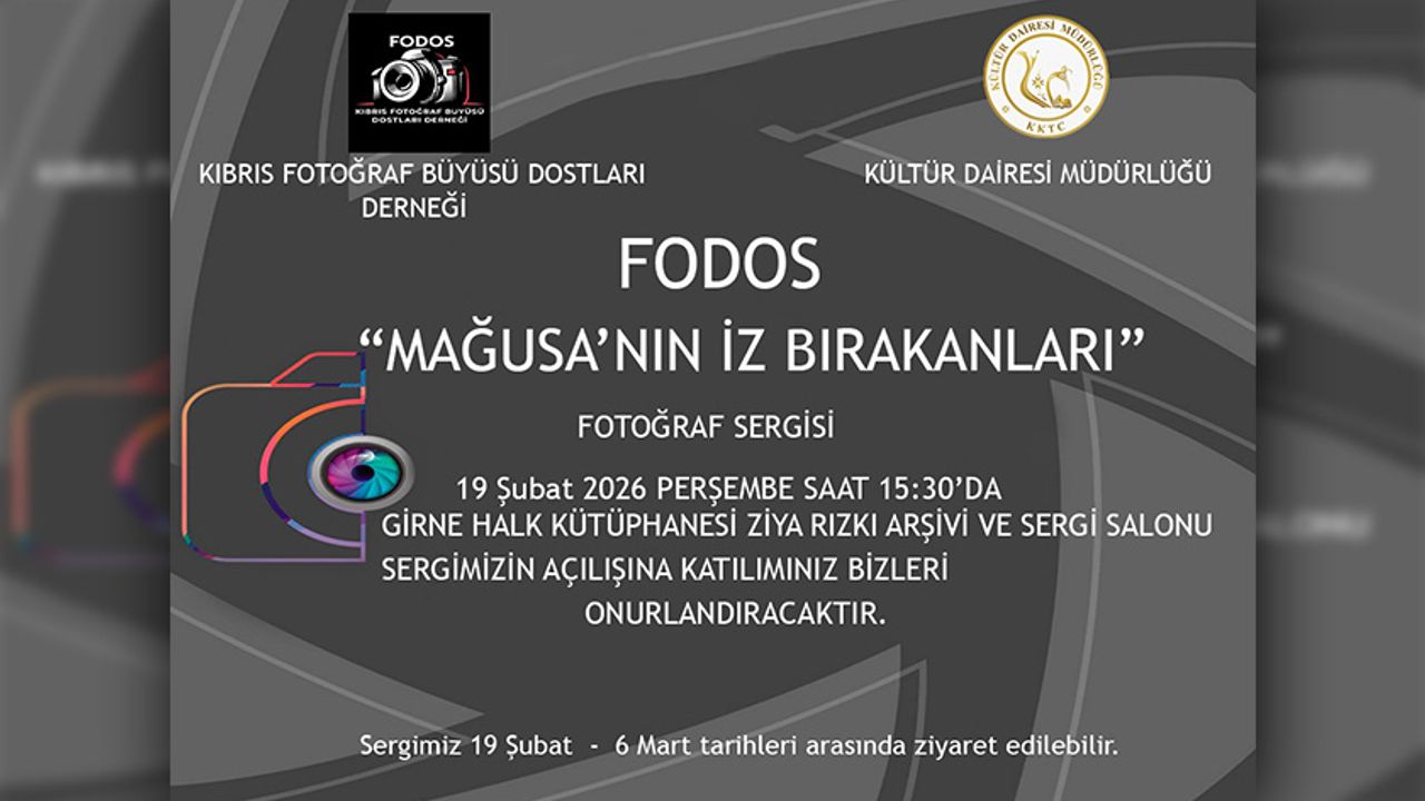 Başbakan Yardımcılığı Turizm Kültür Gençlik ve Çevre Bakanlığı’na bağlı Kültür Dairesi’nin Güzel Sanatlarla İlgili Derneklere Yardım Tüzüğü kapsamında katkı yaptığı Kıbrıs Fotoğraf Büyüsü Dostları Derneği’nin (FODOS) “Mağusa’nın İz Bırakanları” isimli fotoğraf sergisi, Girne Halk Kütüphanesi Ziya Rızkı Arşivi ve Sergi Salonu’nda sanatseverlerin izlenimine sunuluyor.