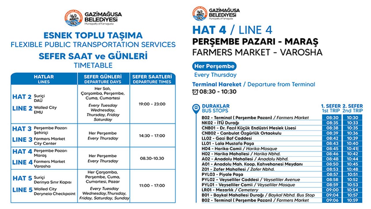 Gazimağusa Belediyesi (GMB) tarafından hayata geçirilen Esnek Toplu Taşıma Sistemi 4. Etap seferleri bugün başlıyor.