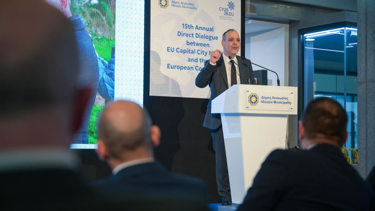 Lefkoşa Türk Belediyesi (LTB) Başkanı Mehmet Harmancı, güney Lefkoşa Belediye Başkanı Charalambos Prountzos’un davetiyle katıldığı “15. AB Başkent Belediye Başkanları ile Avrupa Komisyonu Arasında Direkt Diyalog Zirvesi” kapsamında düzenlenen bir oturumda konuşma yaptı.