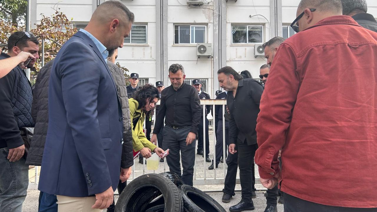 Kıbrıs Türk Öğretmenler Sendikası (KTÖS) Genel Sekreteri Burak Maviş, üzerinde “İstatistik Kurumu” yazılı içinde marul olan bir sepet taşıdı.