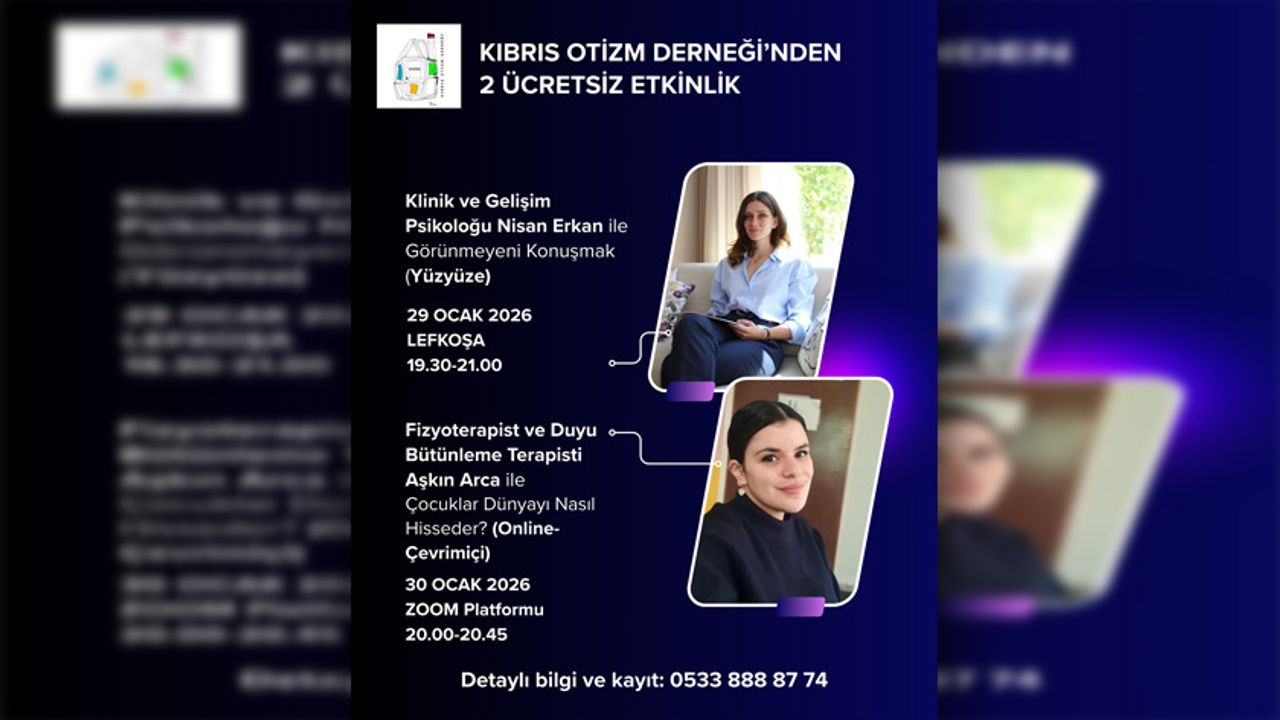 Kıbrıs Otizm Derneği (KODER), otizm spektrumundaki bireylerin ailelerine yönelik destek çalışmalarına iki ücretsiz etkinlikle devam ediyor.