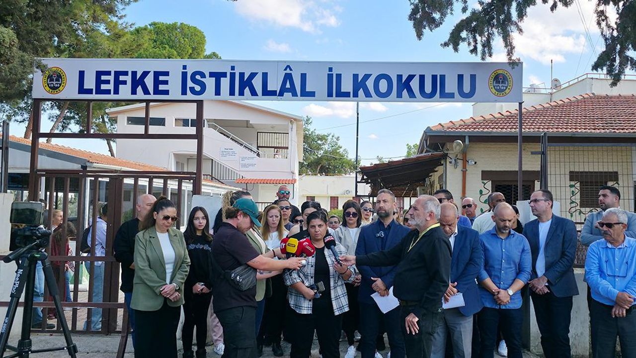 KTÖS Genel Sekreteri Burak Maviş, okul önünde yaptığı konuşmada, Lefke İstiklal İlkokulu’nun tarihi hakkında bilgiler vererek, okulda konteyner sınıflarda eğitim yapıldığını ve deprem raporları üzerinden 14 ay geçmesine rağmen güçlendirme veya yeniden inşa çalışmalarının başlatılmadığını söyledi.