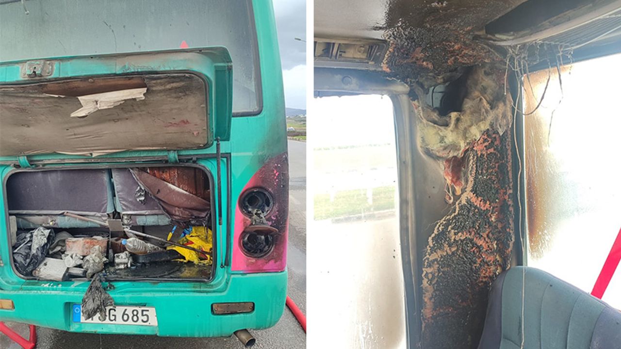 Lefkoşa-Girne ana yoluna Gönyeli Çemberi yakınlarında bulunan bir otobüs durağı önünde, çalışır durumdaki minibüste arka far elektrik kablolarının kısa devre yapması sonucu yangın çıktı.