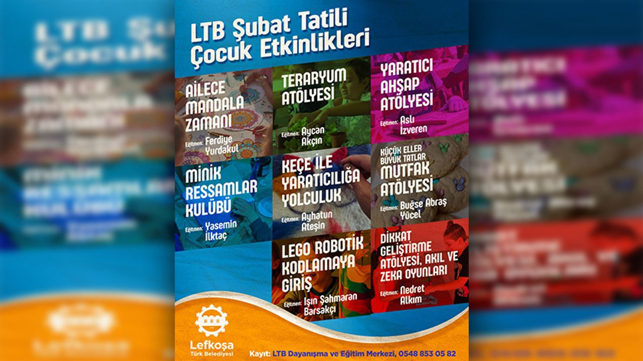 Lefkoşa Türk Belediyesi (LTB) yarı yıl tatili dolayısıyla çocuklara yönelik etkinlikler düzenleyecek, etkinlikler için kayıtlar 30 Ocak tarihine kadar yapılabilecek.