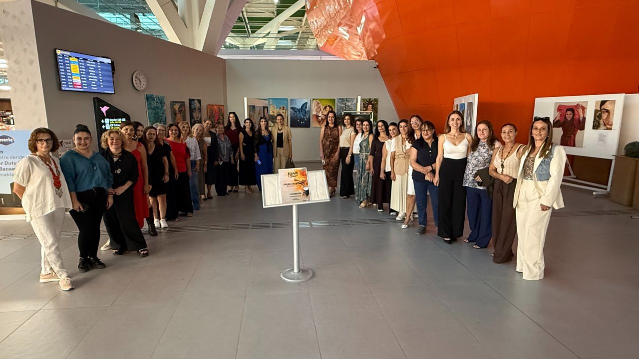 Sergide eseri olan kadınlar, Ercan Havalimanı’nda sergilenen eserlerini ziyaret ederek, fotoğraf ve videolar çekti. Kadınlar, sergi önünde toplu fotoğraf çekerek, kendilerine bu imkanı veren T&T Havalinanı İşletmeciliği’ne teşekkür etti.