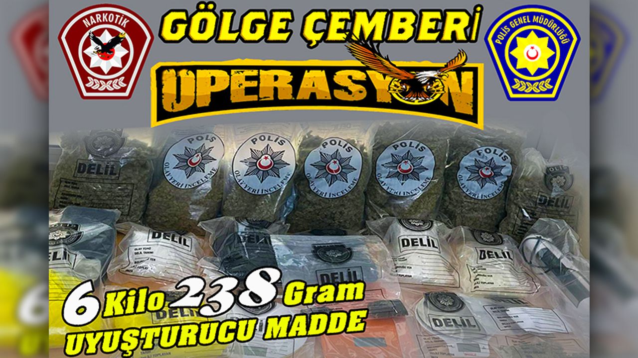 Narkotik ve Kaçakçılığı Önleme Müdürlüğü Ekipleri dün akşam “Gölge Çemberi Operasyonu” düzenledi, 6 kilo 238 gram uyuşturucu ele geçirdi.