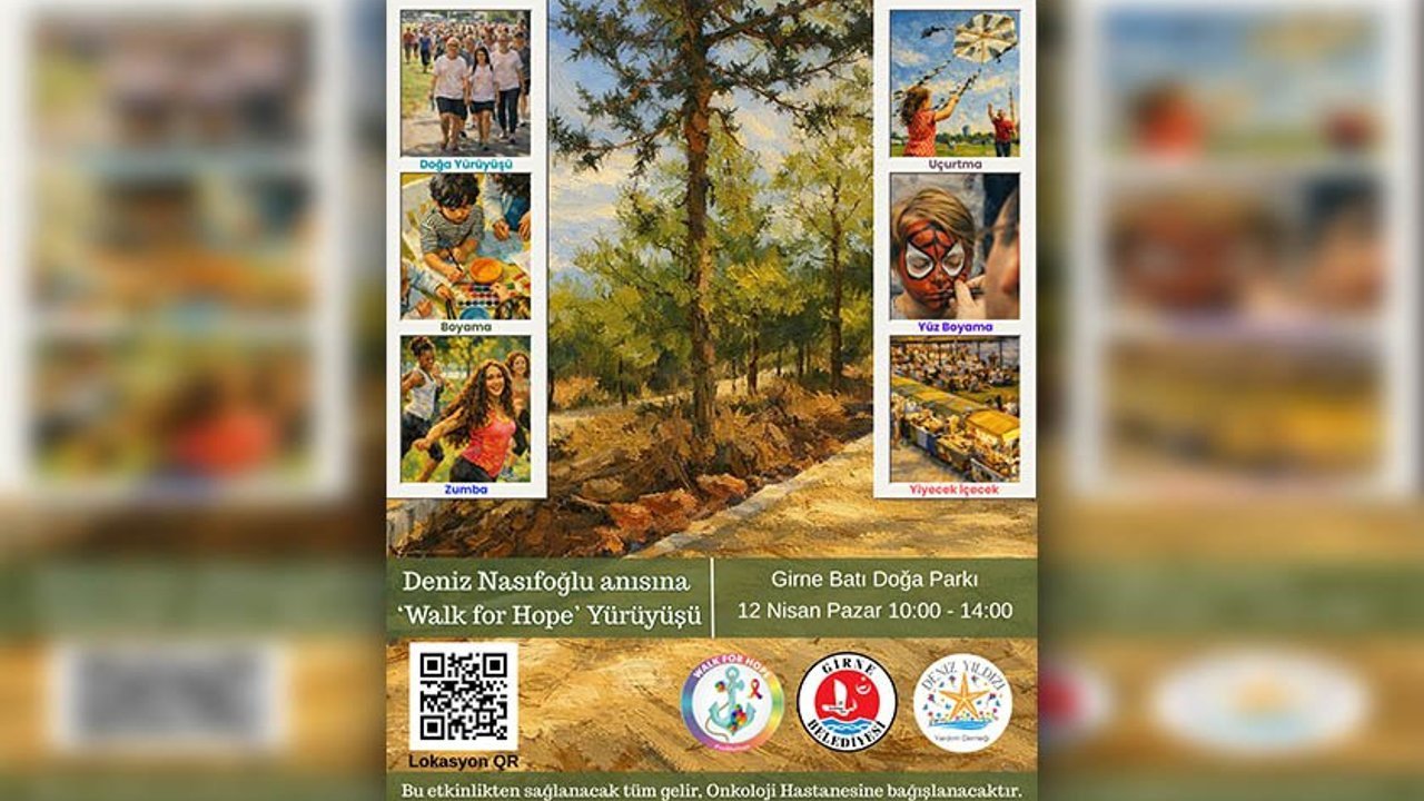 Bu yıl dördüncü kez organize edilen ve merhum Deniz Nasıfoğlu anısına yapılacak ‘Walk for Hope’ yürüyüşü, 10.00 ile 14.00 saatleri arasında Girne Batı Doğa Parkı’nda gerçekleştirilecek. Etkinlikten elde edilecek tüm gelir, onkoloji hastalarına destek amacıyla bağışlanacak.