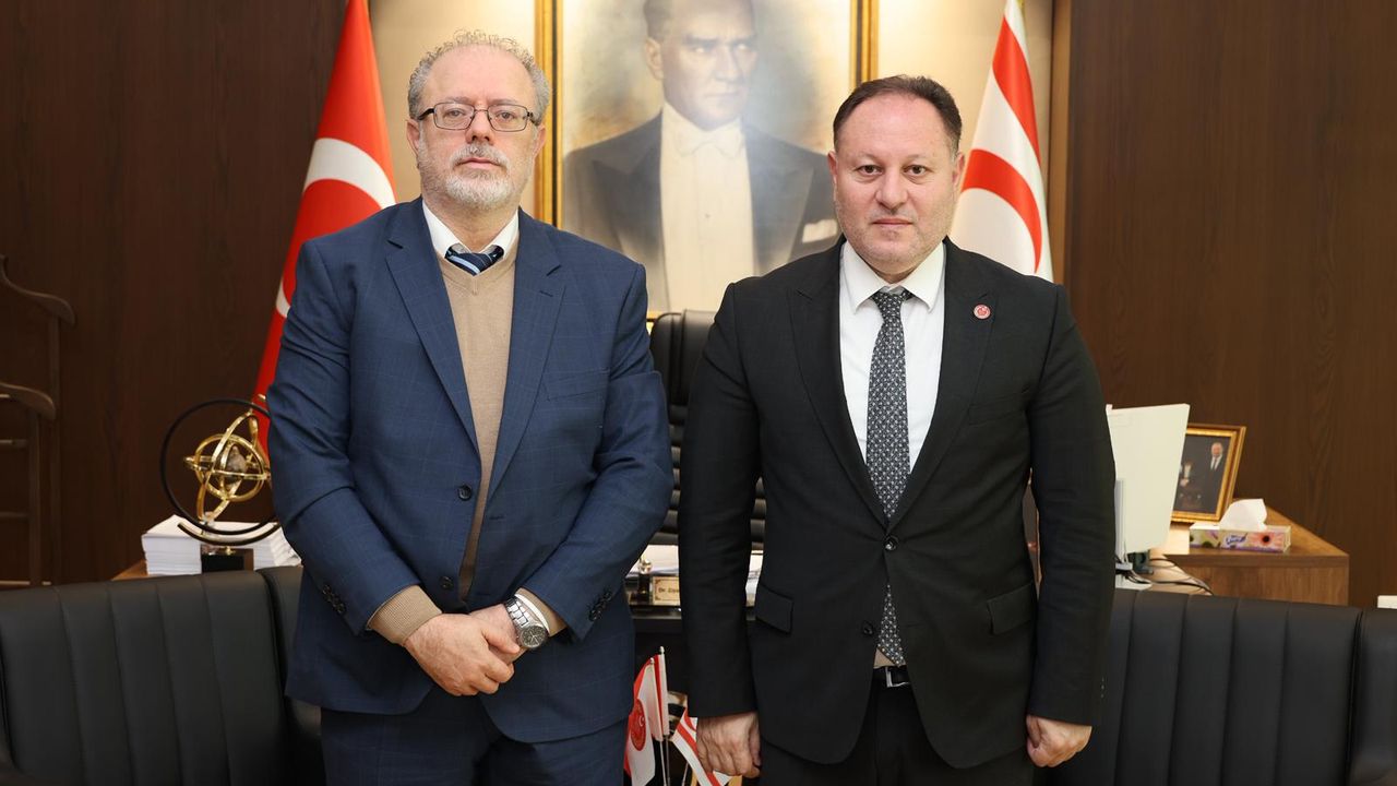 Cumhuriyet Meclis Başkanı Ziya Öztürkler, Onbeş Kasım Kıbrıs Üniversitesi (OKKÜ) Mühendislik Fakültesi Dekanı Yrd. Doç. Dr. Refet Ramiz’i kabul etti.
