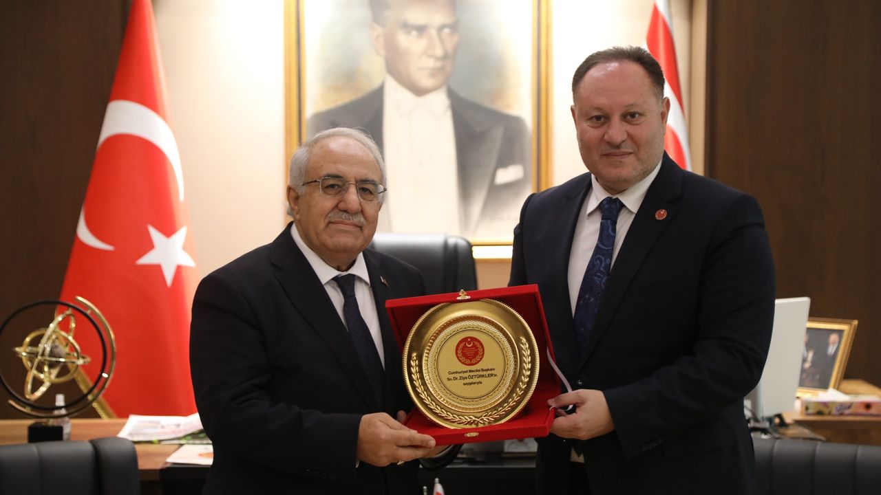 Görüşmenin sonunda karşılıklı plaket takdimi gerçekleştirildi.