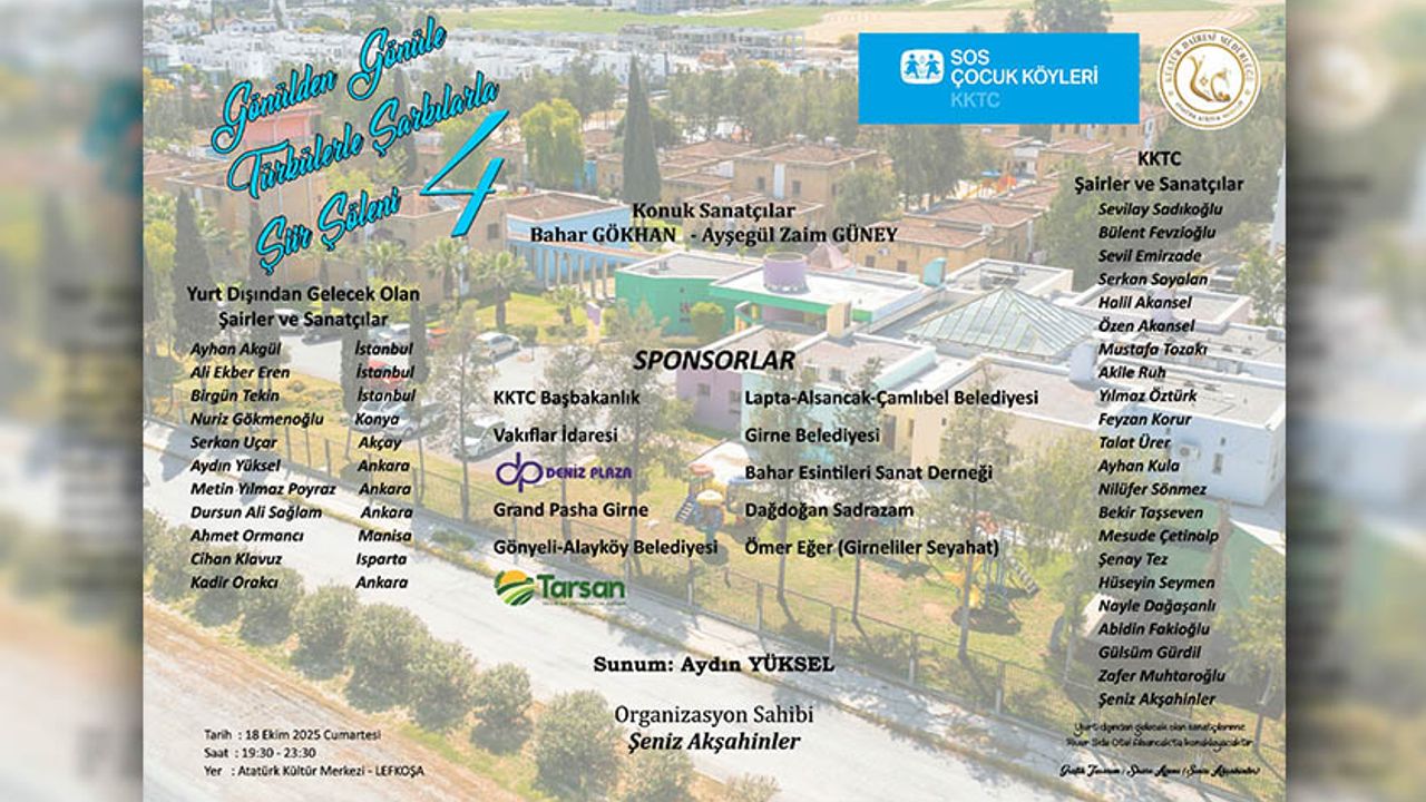 “Gönülden Gönüle Türkülerle Şarkılarla Şiir Şöleni" SOS Çocuk Köyleri yararına 18 Ekim Cumartesi günü düzenlenecek.