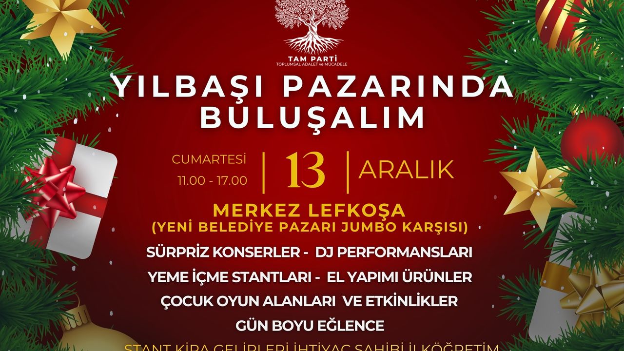 Toplumsal Adalet ve Mücadele Partisi (TAM Parti), cumartesi günü Merkez Lefkoşa’da Yılbaşı Dayanışma Pazarı düzenleyecek.