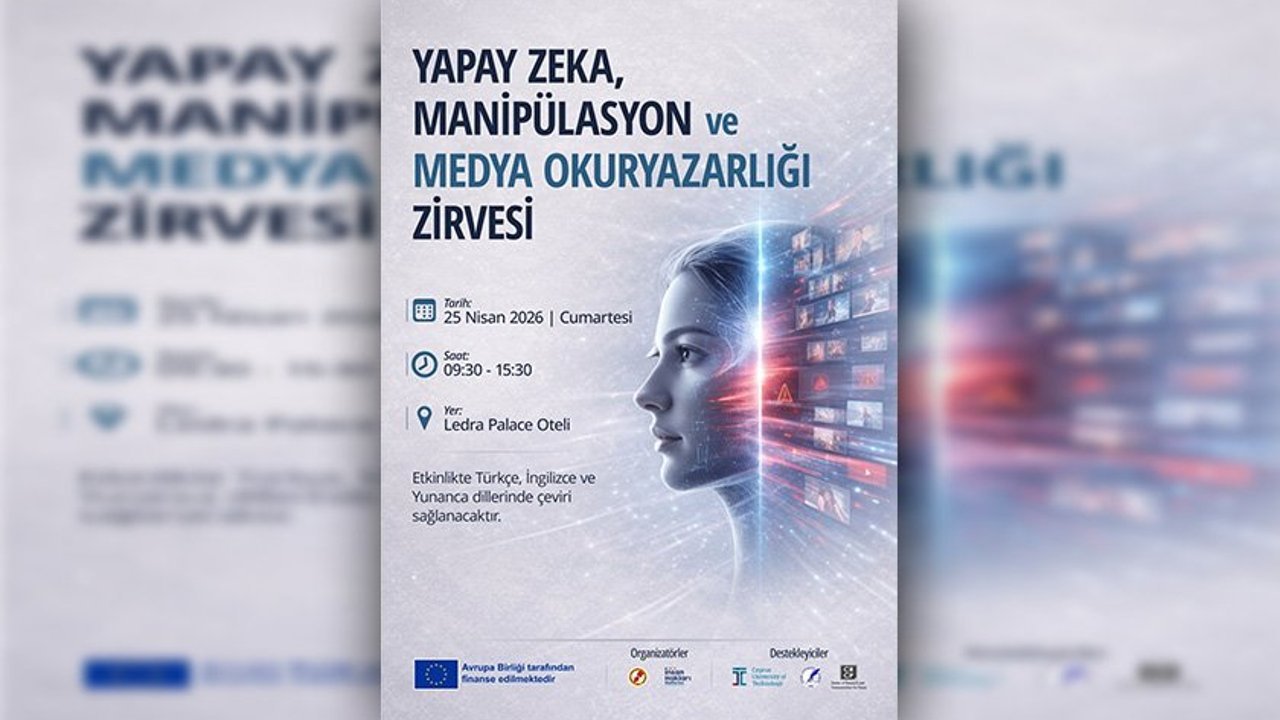 Kıbrıs Türk Gazeteciler Birliği ile İnsan Hakları Platformu’nun organizatörlüğünde; Kıbrıs Gazeteciler Sendikası, Fact-Check Cyprus (Cyprus University of Technology) ve Barış İçin Araştırma ve İletişim Merkezi’nin (Doğu Akdeniz Üniversitesi) katkısıyla düzenlenen Yapay Zeka, Manipülasyon ve Medya Okuryazarlığı Zirvesi, Avrupa Birliği finansmanıyla 25 Nisan Cumartesi günü ara bölgedeki Ledra Palace Otel’de gerçekleştirilecek.