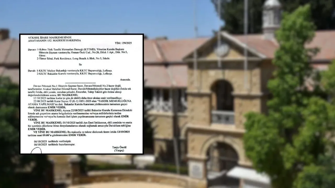 Seçim yasakları öncesinde yapılan 148 tasdik memuru ataması, Kıbrıs Türk Tasdik Memurları Derneği’nin (KTTMD) başvurusu üzerine Yüksek İdare Mahkemesi kararıyla durduruldu.